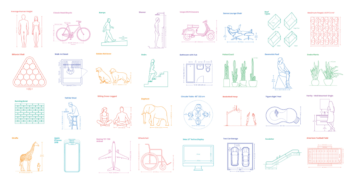 Ever wondered what the standard dimensions are for a random everyday object? Wonder no more with this growing database of Dimensioned Drawings.