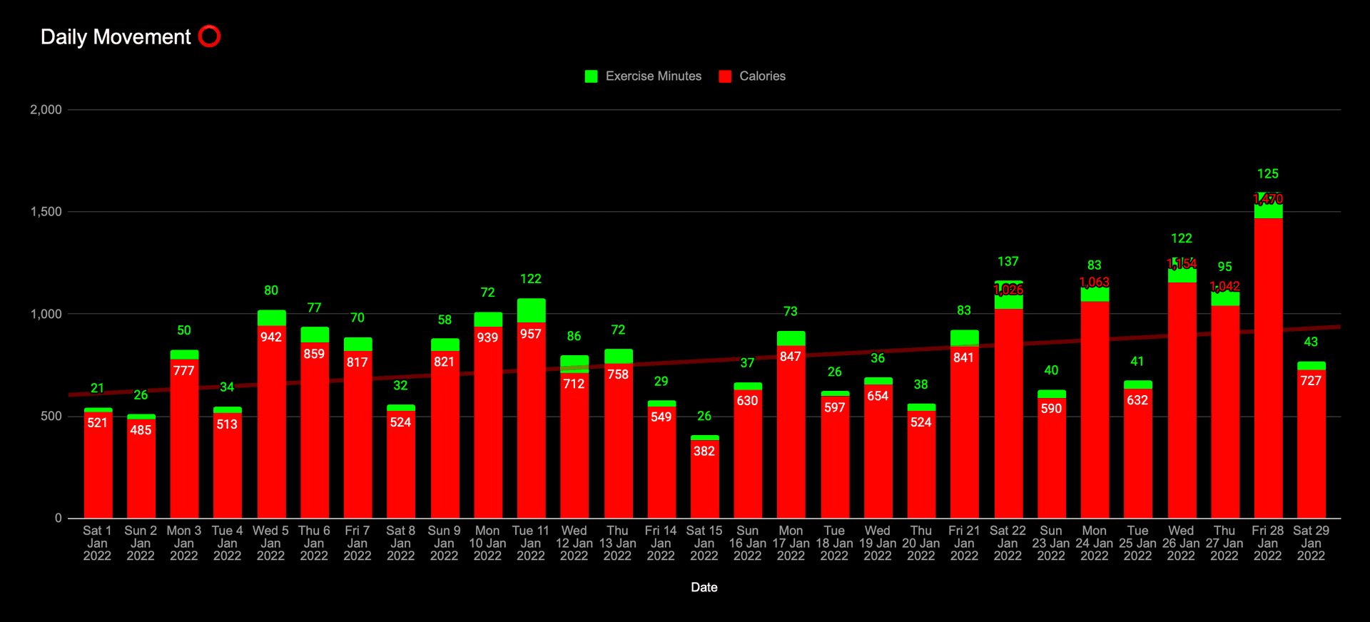 - Refined the Apple Health to Personal Dash setup, now with a daily chart of movement and exercise