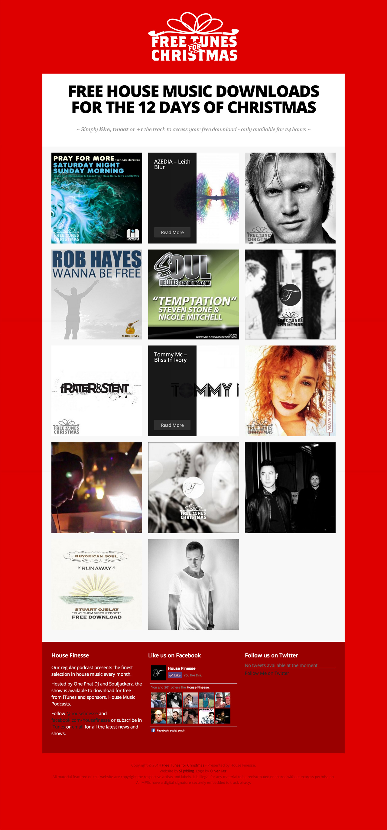 Several years back in 2010, I teamed up with a number of reputable producers from around the house music scene to offer free daily music downloads for the 12 days of Christmas. In return, the artists had the opportunity to build their profiles with accompanying releases, events and online profiles. Free Tunes for Christmas was born.